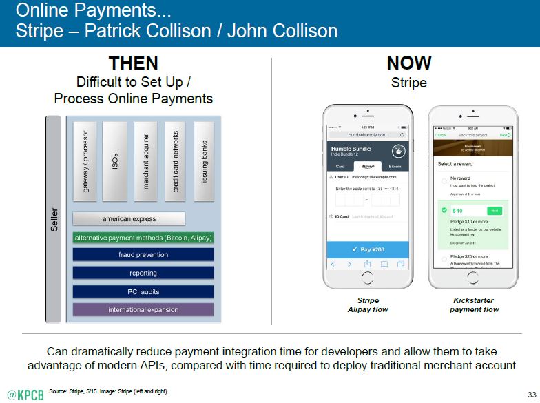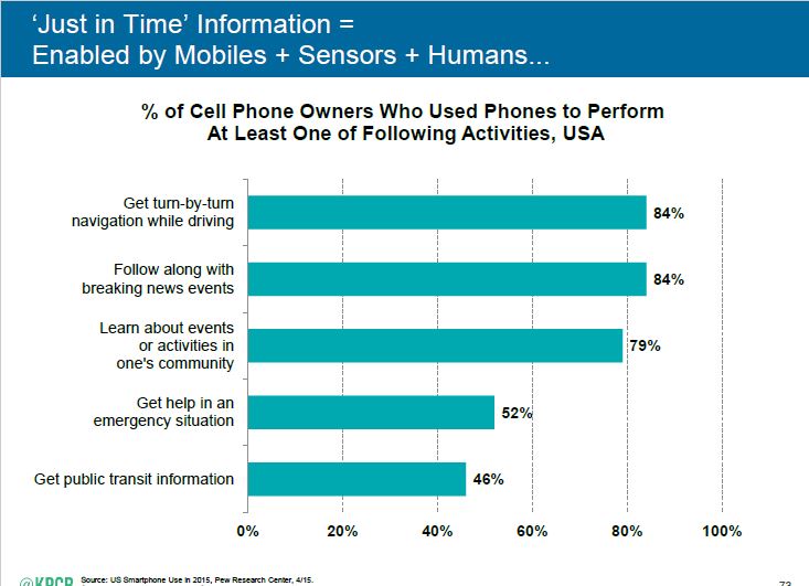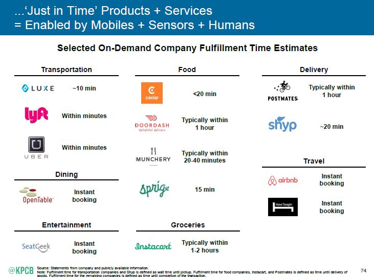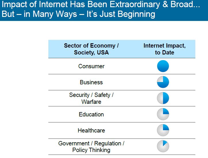 Nel nostro precedente post ci eravamo impegnati a ritornare sul rapporto curato dalla KPGP, con la regia di Mary Meeker, dedicato alle evoluzioni di business avvenute in internet nel  2015.  Il motivo è che attraverso la sua lettura saremmo  stati aiutati a entrare con maggiore dettaglio e ragione in quella fantasmagoria di attività che, muovendosi sulla e intorno alla rete, sempre più trovano le vie per coagularsi in proposte imprenditoriali durevoli che diventano poi infrastrutture per il nostro agire in molteplici ambiti di vita. Insomma, un modo per indirizzare l’attenzione oltre i soliti protagonisti quali i vari Facebook, Apple, Twitter, aziende che paiono saturare per i più gli orizzonti internettiani.  Premettiamo che il rapporto, parlando di applicazioni e sistemi digitali, ha un indubbio outlook globale ma una base applicativa che è focalizzata, almeno inizialmente, sul mercato statunitense. Ma ciò non rappresenta un problema in quanto lo scopo è di fornire un esempio di esplorazione finalizzato ad aprire una finestra su alcuni degli sviluppi imprenditoriali che il mondo della rete sta rendendo possibili.