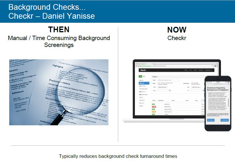 Anaplan invece è un servizio SaaS che ha l’obiettivo di collegare e dare una visione integrata e continuamente aggiornata della pianificazione aziendale sviluppata a livello di finanza, vendite e operativa sganciandole dai tool stand-alone su cui normalmente esse si basano. Checr fornisce invece microservizi tramite APIs, ovvero informazioni on-demand sollecitate all’interno di applicazioni software da parte di qualche altra piattaforma di servizio in rete, intesi a riportare indicazioni di verifica su persone a fronte di esigenze diverse (assunzioni lavorative, controllo residenza, pericolosità, ecc.), una funzionalità molto richiesta nel momento in cui si offrono servizi on-demand, ad esempio nel caso dei servizi taxi.